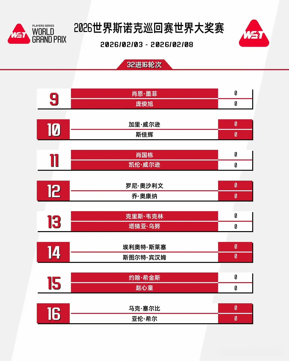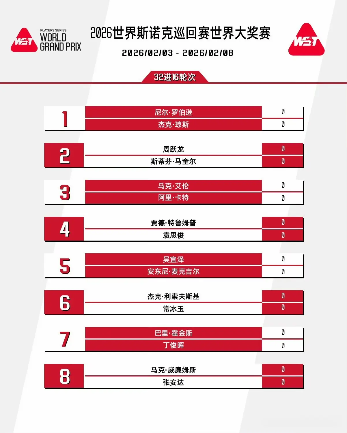 北京本事2025年12月22日,2025斯诺克苏格兰公开赛落下帷幕,中国小将常冰玉2比9不敌克里斯韦克林缺憾无缘冠军。跟着苏格兰公开赛的驱散体育录像/图片,2026斯诺克全国大奖赛签表也随之敲定。证实赛制安排,单赛季排行前32的球员将被邀请到中国香港进行全国大奖赛,签位将是首尾对应,第1对第32,依此类推。